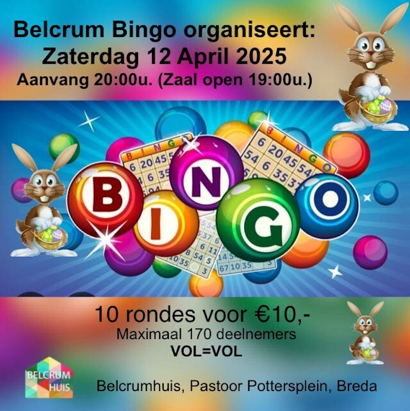 Op zaterdag 12 april is er de Belcrum bingo. Deze avond wordt georganiseerd door 3 buurt bewoners Miranda, Mieneke en Miranda. Er zijn weer veel ondernemers die op deze avond sponsoren om er een gezellige avond van te maken.