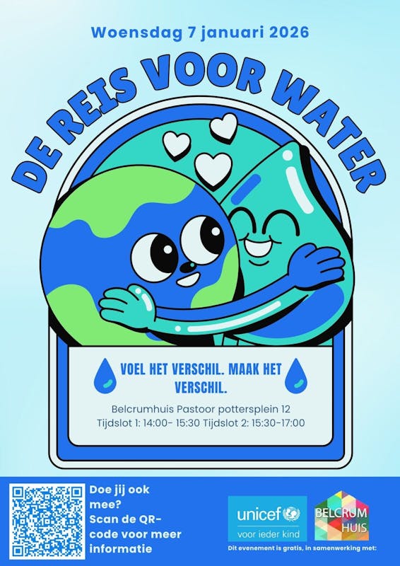 Op 7 Januari 2026 is het zover, de Reis voor water. Dit is een evenement georganiseerd door 5 studenten van de BUAS in samenwerking met Unicef Breda en het belcrum huis. Tijdens dit evenement tonen wij hoe het leven eruit ziet voor kinderen in Afrika om water te kunnen krijgen. Dit laten wij jullie zien door middel van een korte video en verschillende interactive activiteiten voor alle bezoekers om te kunnen ervaren hoe het is om een kind in Africa te zijn. Dit is een GRATIS evenement voor het hele gezin! VOL IS VOL!