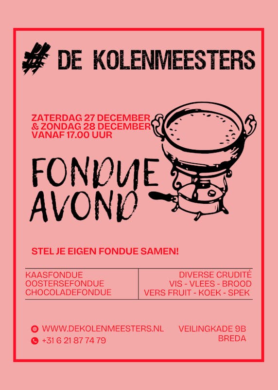 Dit weekend, 27 & 28 december, staat helemaal in het teken van fonduen — en het mooiste is: je kunt je eigen fondue helemaal zelf samenstellen!