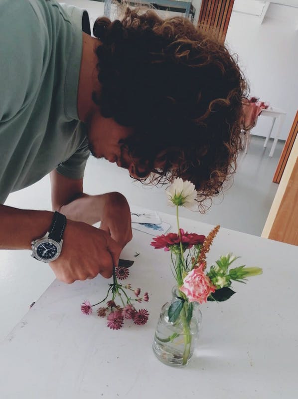 Ik weet dat Marthe boeketten maakt voor winkels en particulieren en kransen voor speciale gelegenheden. Dit combineert ze met dagbesteding voor cliënten met een beperking. Hoe zit dat dan in elkaar? En wat is de rol van Marthe hierin? Ik ben heel benieuwd.