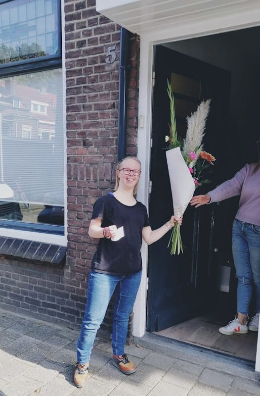 Na afscheid te hebben genomen van iedereen loop ik met een prachtige bos bloemen naar mijn auto. Wat een heerlijk plek om te mogen werken. De combinatie bloemen en cliënten met een beperking vind ik geweldig. Dat is ook wat ik zie bij Marthe en Karmijn. Ze hebben hier een prachtige dagbesteding weggezet en lijken van hun hobby hun werk te hebben gemaakt.