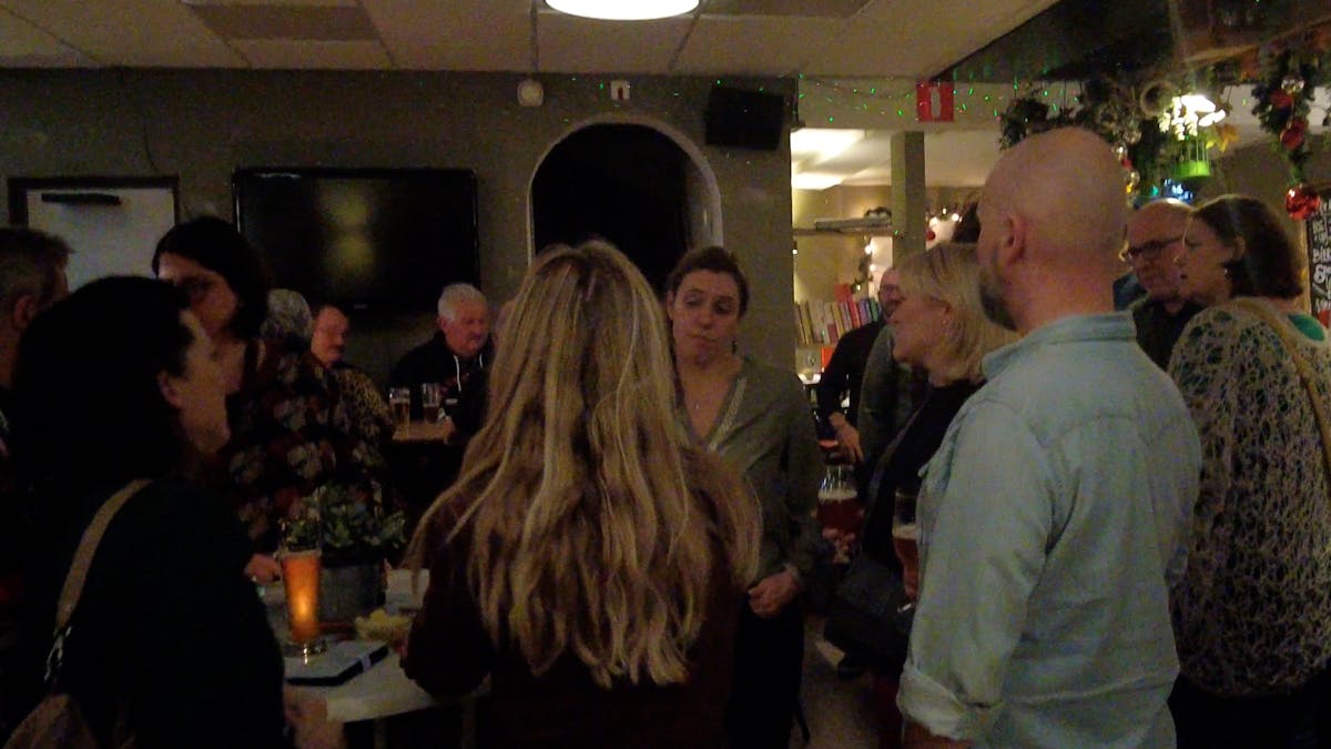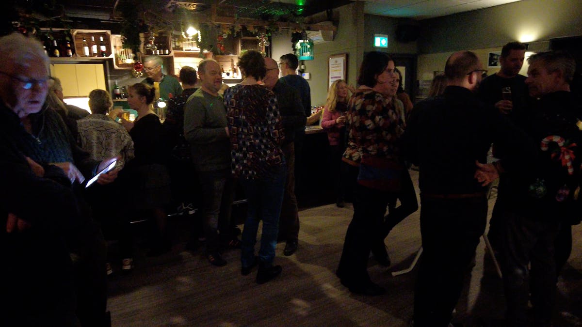 Een gezellige en vrolijke kerstborrel gehouden in het Belcrumhuis met muzikale begeleiding van de Jingle Balls (Serge & Bob).