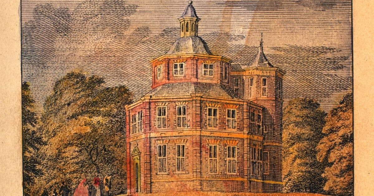 Men ging derwaarts door de agter-poort van 't Kasteel, langs een dubbele laan van ype-boomen, waar nevens een Palmasie-baan was. (palmasie- of maliebaan = balspel). Dit alles is, in 't begin der Belegering van 't jaar 1624, by die van de Stadt afgehouwen en geslecht: men ziet echter heden (1744) nog op een heuvel een agtkant steene Speelhuis staan, nevens 't welke men in 't vervolg van tyd weder eenige dreven of laanen van eyke- en lindeboomen, tot cieraad en eene aangename wandeling heeft geplant".