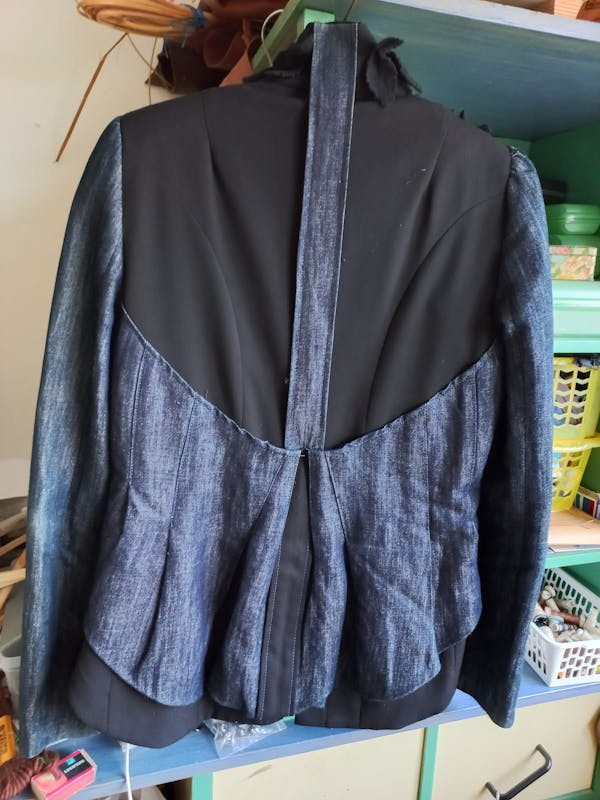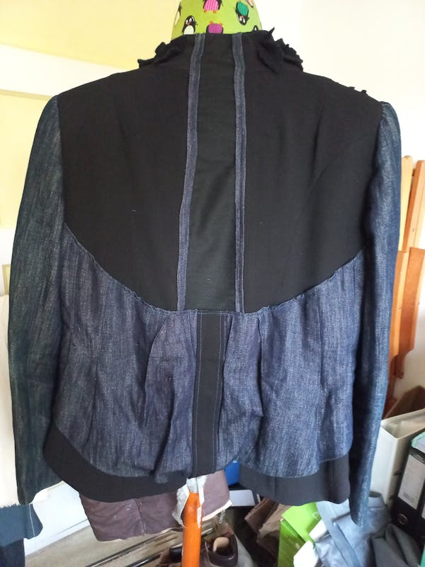 Een klant kwam met een jasje die wat te krap was geworden. Ik heb er een stuk tussen gezet en nu kan ie weer een paar jaar mee.