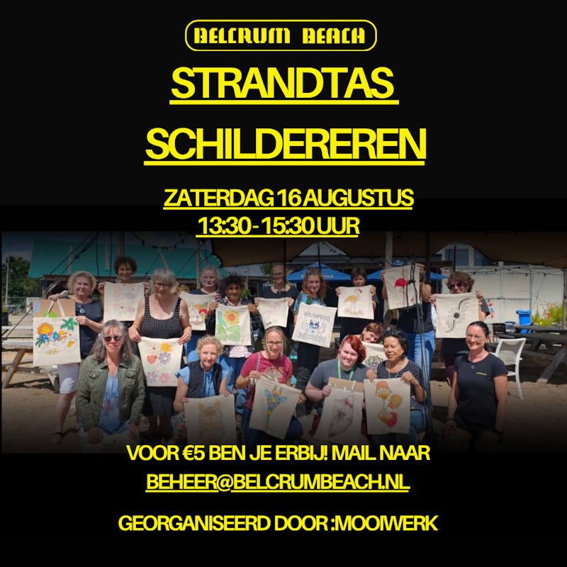 📅 Za 16 aug | 13:30 - 15:30 | Creatieve workshop “Strandtas schilderen” door MOOIwerk 🎨