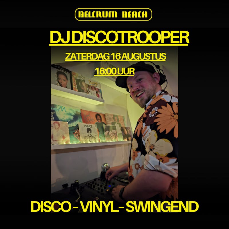 En later op de dag: DJ Discotrooper met disco, funk en soul uit de sixties & seventies — helemaal van vinyl! 🕺