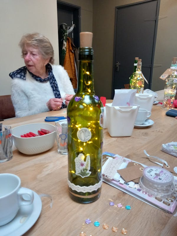 Donderdag 29 februari, was er weer een leuke middag flessen versieren in het Belcrum huis .