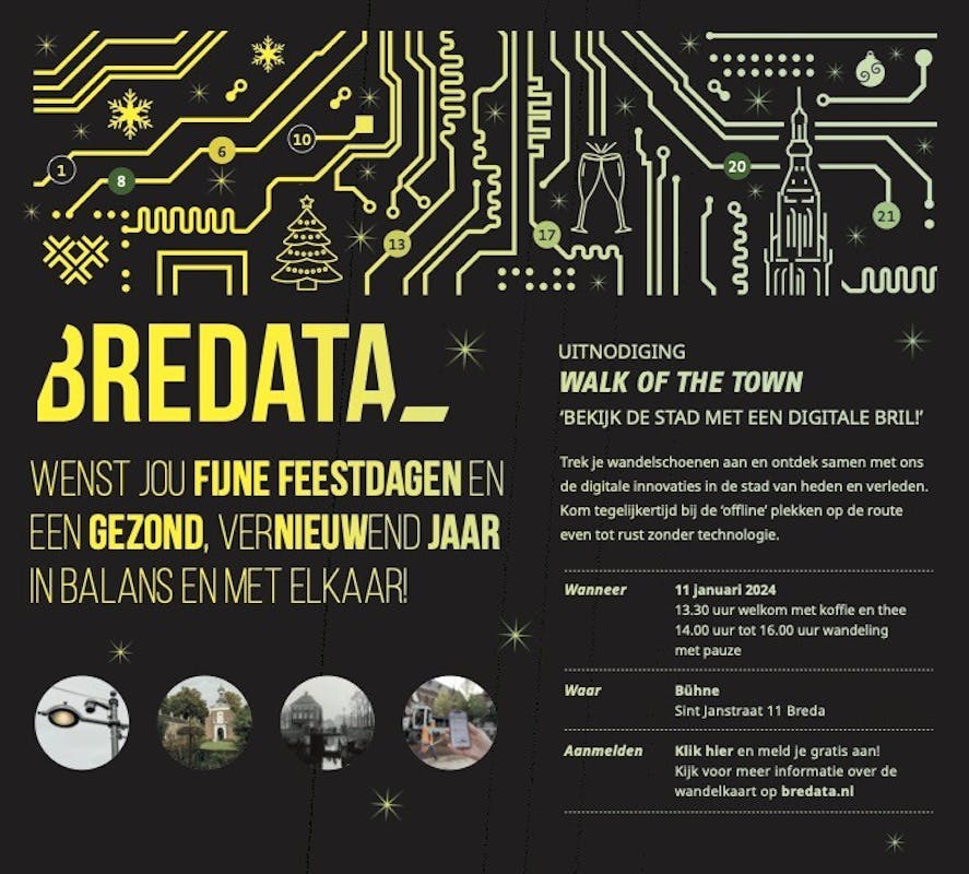 De digitalisering kan Breda namelijk nieuwe oplossingen bieden voor onze maatschappelijke opgaven, onderzoekkansen in de praktijk voor onze onderwijsinstellingen en verdienkansen voor het innovatieve Bredase bedrijfsleven. Met oog voor de risico’s, ethiek en degenen die de ontwikkelingen minder goed kunnen of willen bijbenen.