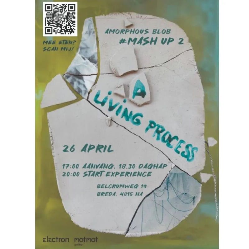Morgen hosten we de tweede editie van de Mash-up! St. Joost studenten Renske Huysman, Elliot Scholtze en Noor van Nuenen laten je kennismaken met hun project ‘A Living Process’. Zij vormen voor deze Mash-up een tijdelijk collectief ‘Amporphous Blob’. Met dit project willen de studenten iets verwezelijken dat nog in ontwikkeling is. Ze hopen een omgeving te creeeren waarin de toeschouwer aangespoord wordt om deel te nemen en zo deel te worden van het levend process ‘Amorphous Blob’. Nieuwsgierig geworden? Kom vooral langs, of klik op deze link voor meer info! *