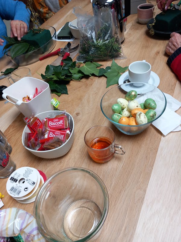 Op donderdagmiddag 28 maart was er weer een leuke middag voor ouderen in het Belcrumhuis, dit keer hebben we paasstukjes gemaakt.